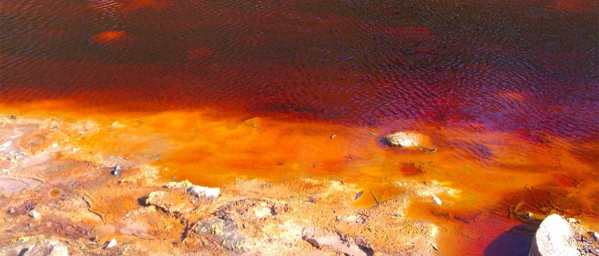 Acid mine drainage in an abandoned copper open pit mine. Photo: Jonathan Hamisi.