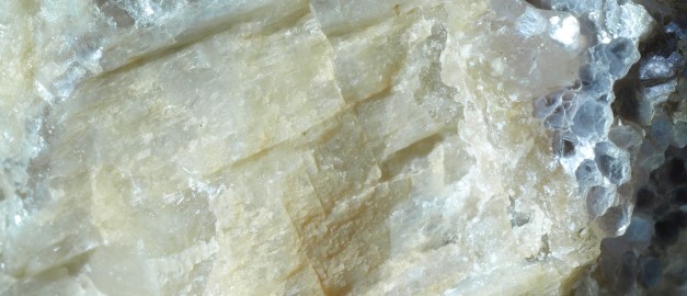 Bilden visar petalit från Utö, det mineral som litium upptäcktes i.